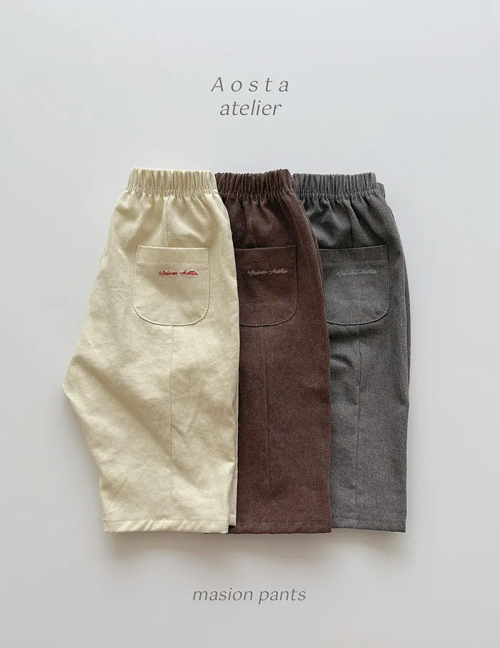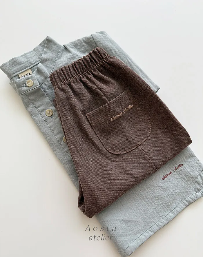 法式家大口袋長版寬褲