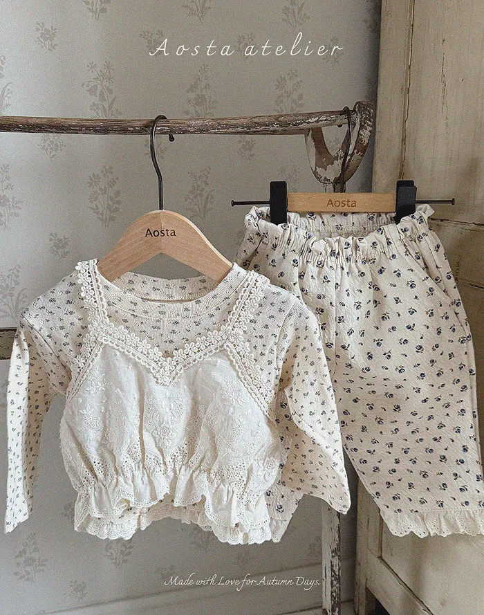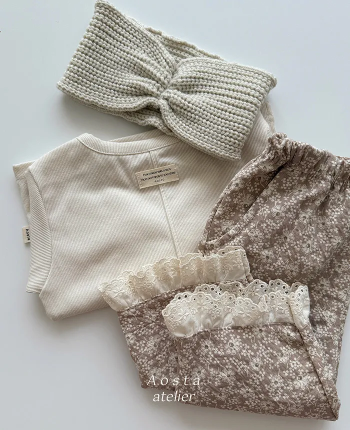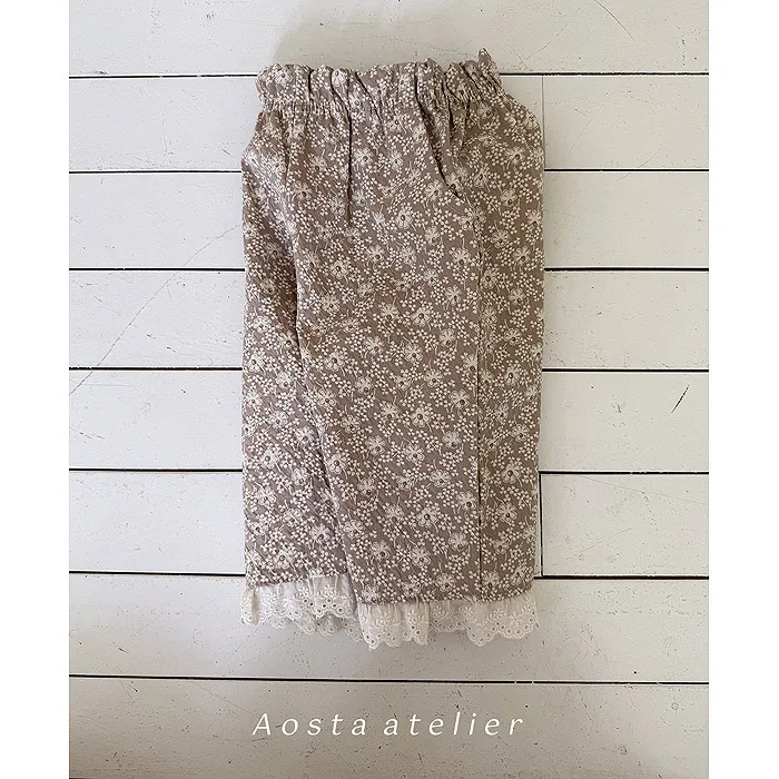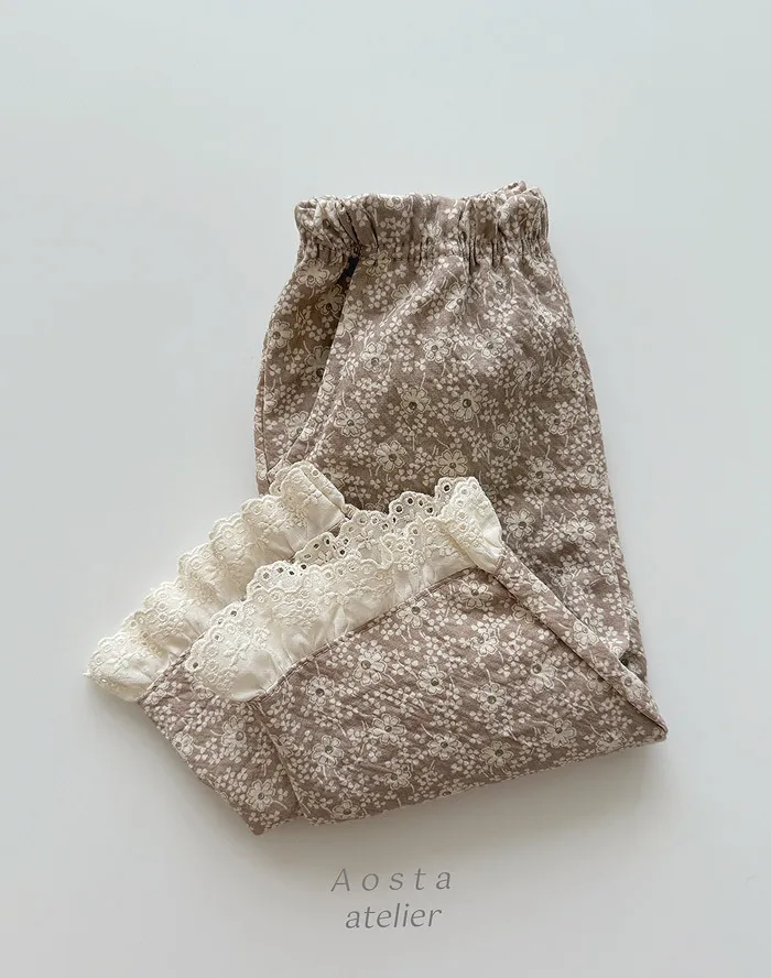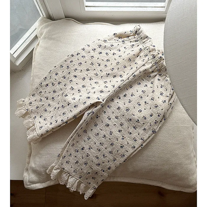 法式家小碎花蕾絲滾邊長褲