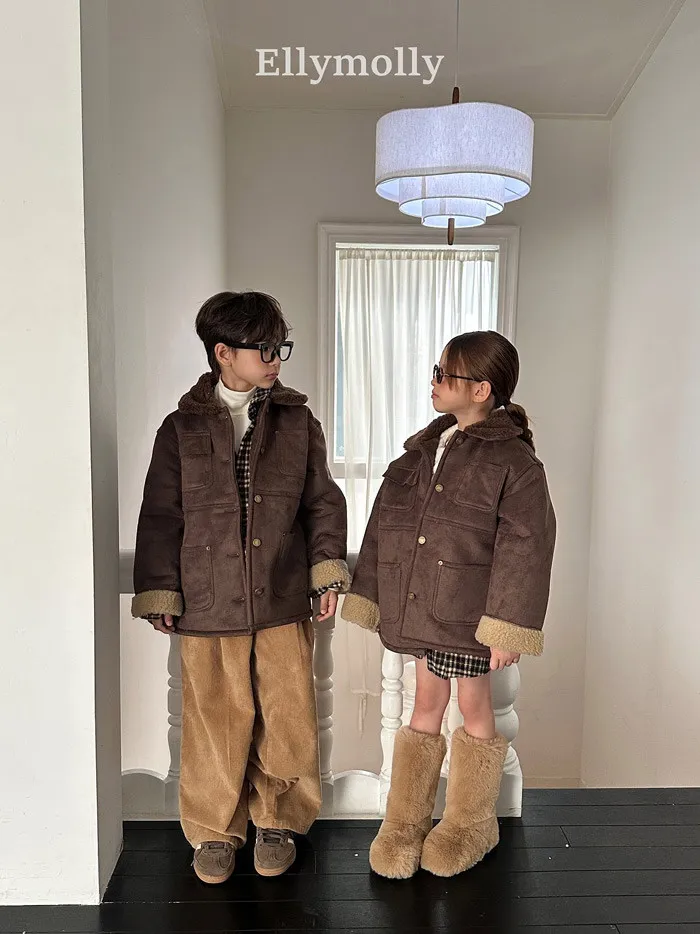 Elly家冬日絨布口袋外套