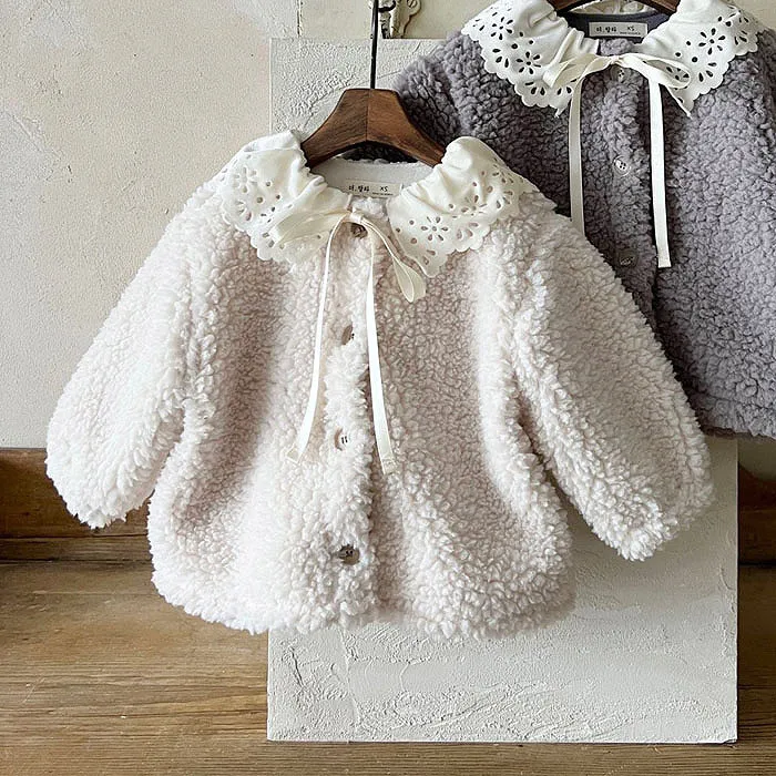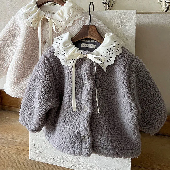 Lala家毛茸茸蕾絲領外套
