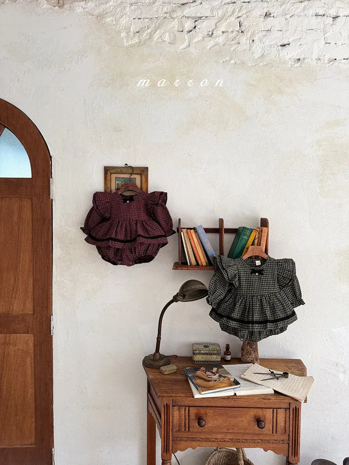 m家優雅小格紋荷葉袖包屁裝