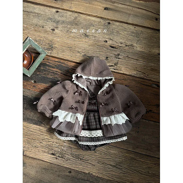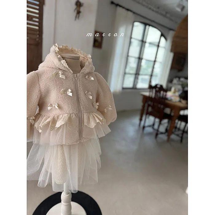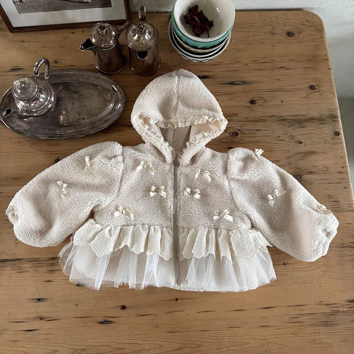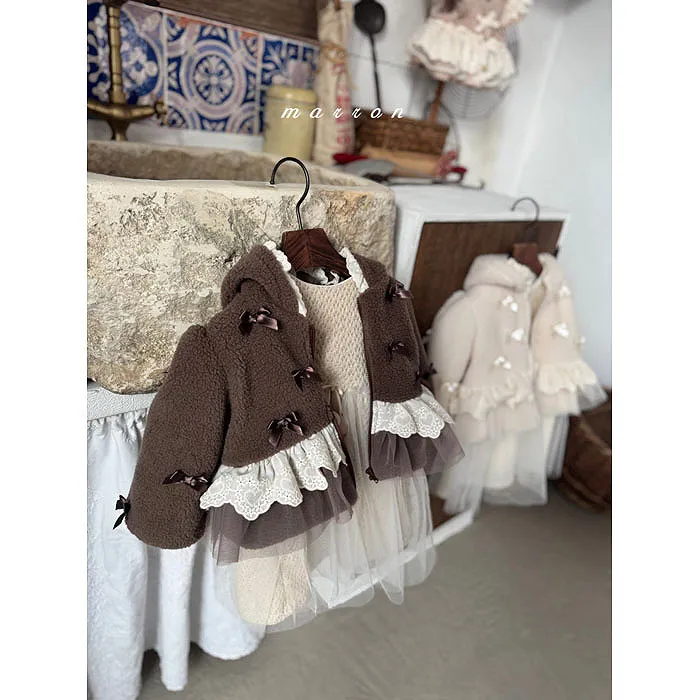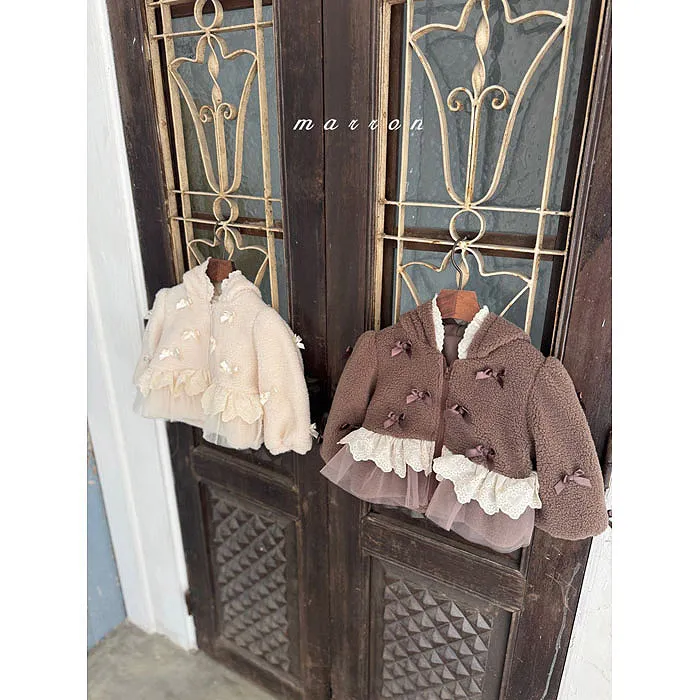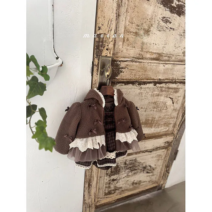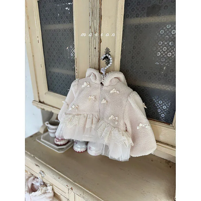 m家蝴蝶結毛絨蕾絲冬日連帽外套