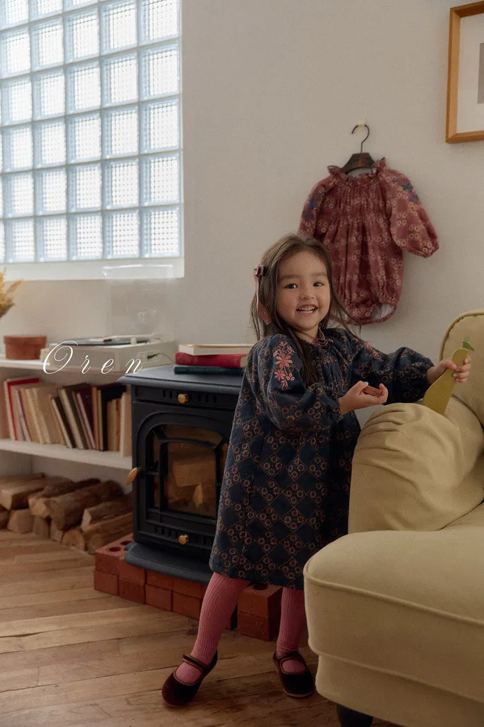 小天使家冬日縮口領碎花姐妹洋裝-姊姊款