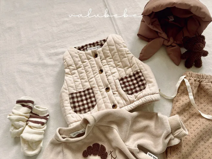 香草家鋪棉格紋口袋背心手足款-嫩嬰