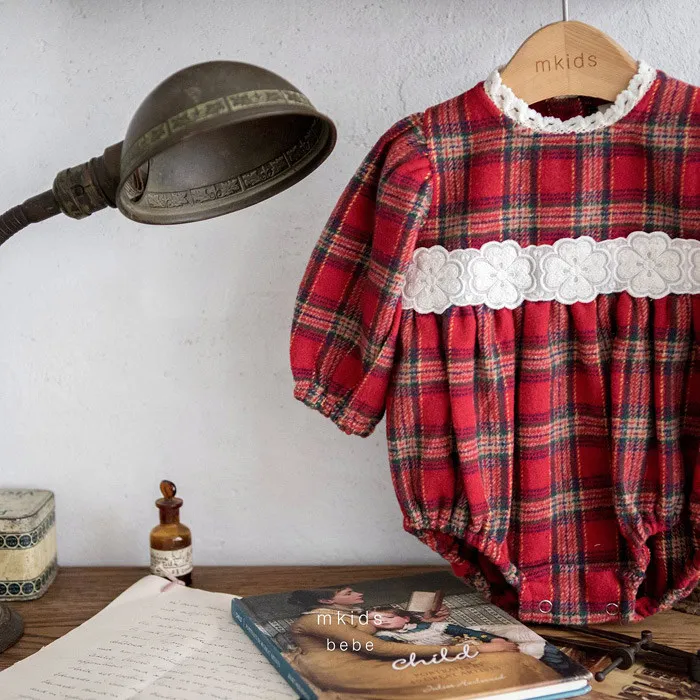 韓服家聖誕風紅格子姐妹裝-包屁款